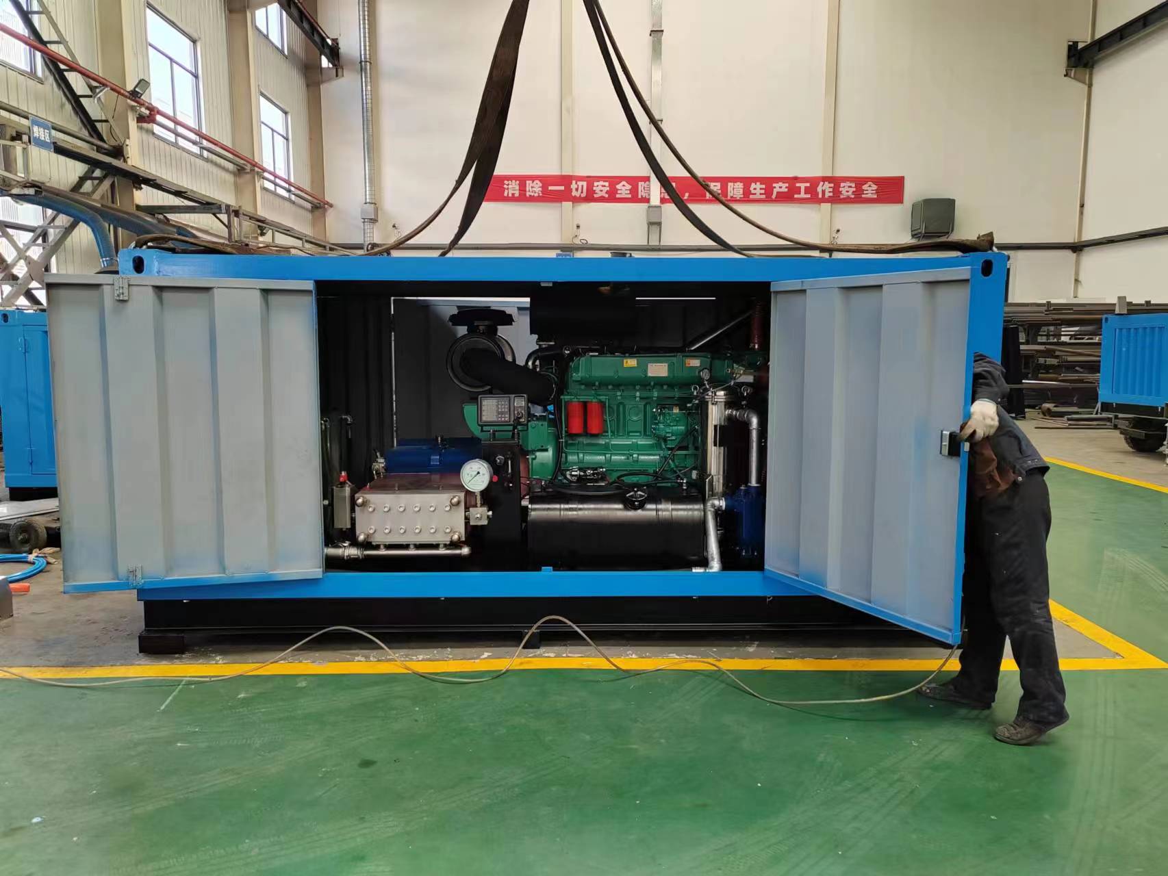 1500公斤清洗设备一般采用国产高压泵,常用流量30升/50升/80升/110升,常见的30升应用于混凝土冲毛,标号在c50以下,单枪作业,效率在每小时三十方左右,或罐车清洗、钻井平台清洗,流量相对较小,人可持枪作业;