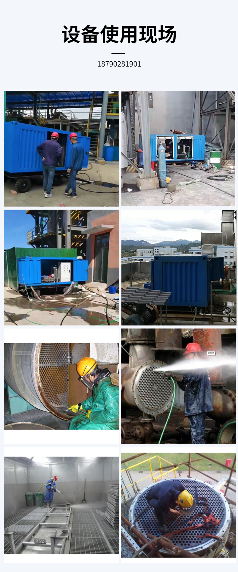工业清洗:如啤酒厂发酵罐、电厂凝结器、管道疏通、机械设备表面除锈。