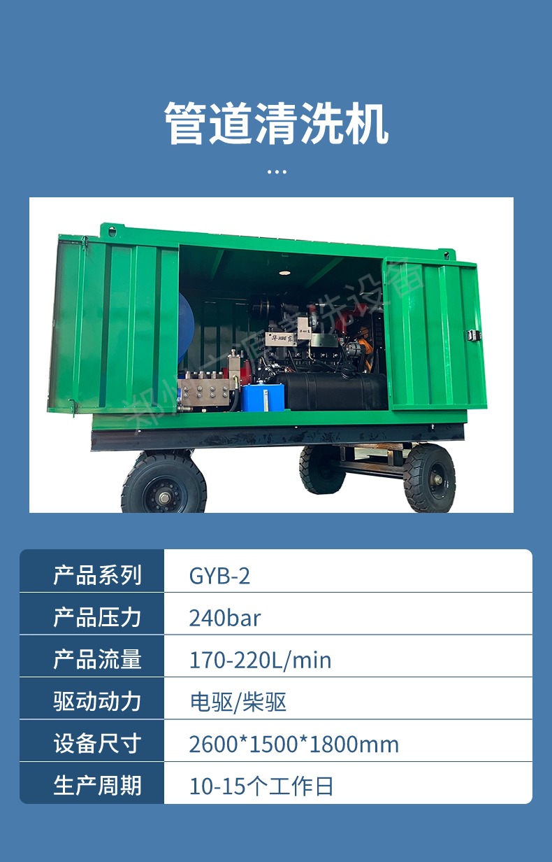 工厂使用的工业管道高压清洗设备是专门设计用来处理各种工业环境下管道内部积聚的污垢、油脂、锈蚀和其他难以清除的沉积物。这类设备通常具备以下几个特点: