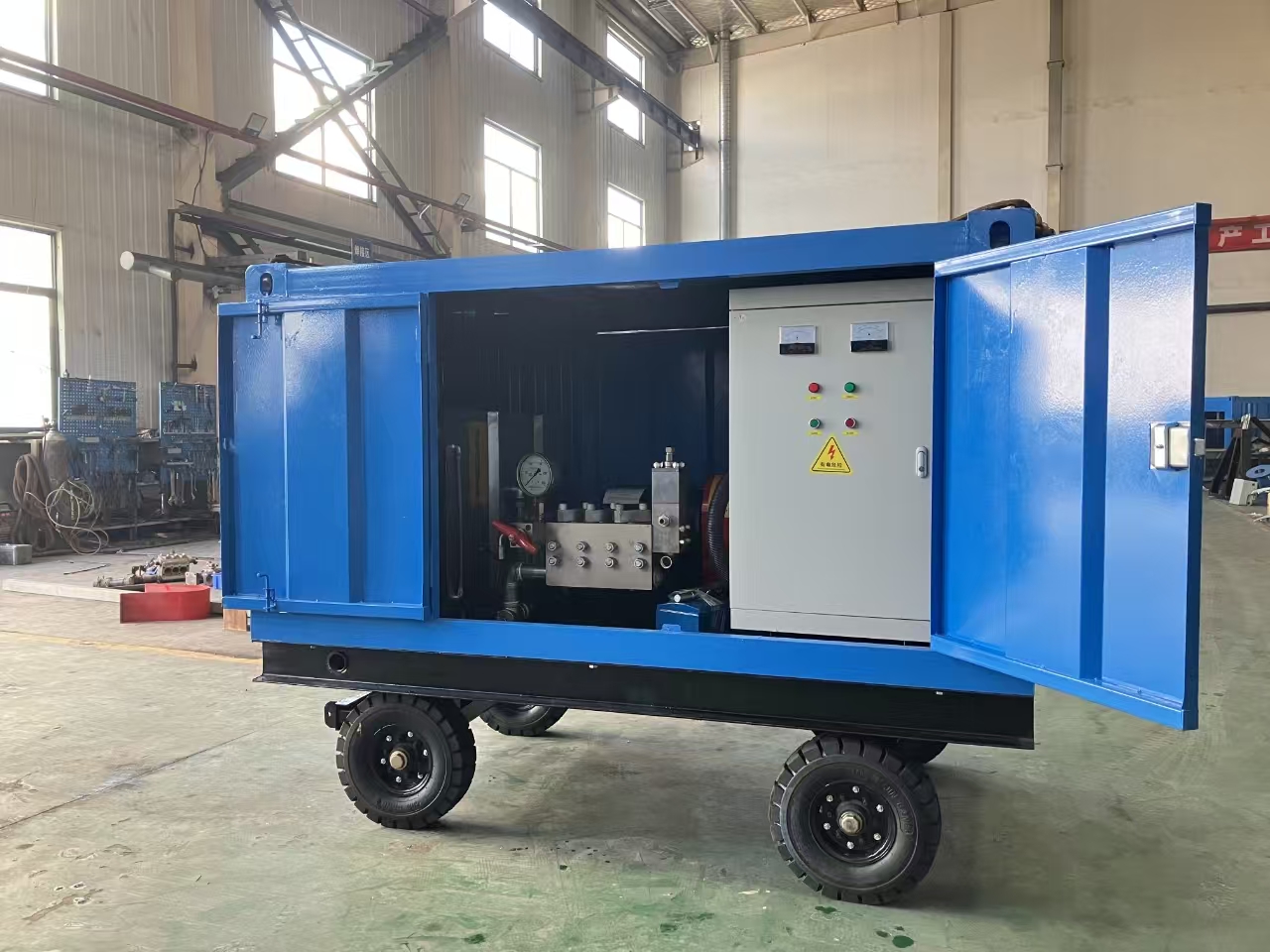 工业设备清洁:对于工厂内各类大型机械设备,如金属加工设备、化工反应釜等,长期使用后表面会附着油污、锈迹和各类杂质。这款高压清洗机凭借 500bar 的超高压力和 57 升 /min 的大流量,能够快速地去除这些顽固污渍,保证设备的正常运行,延长设备使用寿命。