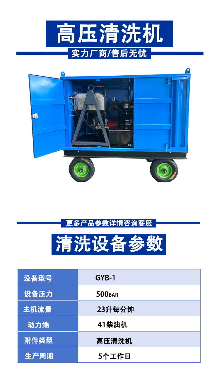 这是一种利用柴油发动机驱动高压水泵,从而产生高压水流的清洗设备。它很大的特点就是动力强劲、无需外接电源、移动性强,非常适合在远离电网或电力供应不便的户外、野外及大型作业场地使用。